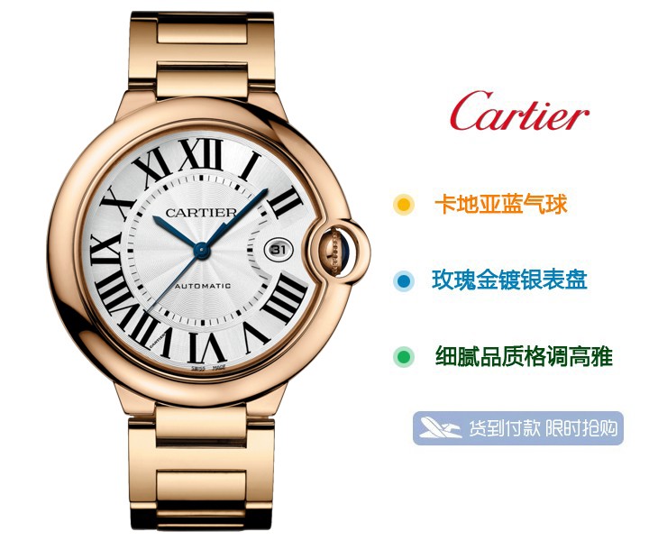 - 浙江 张女士 182****6923 卡地亚蓝气球系列W69006Z2玫瑰金蓝钢大三针银色大盘日期显示自动上链男表卡地亚蓝气球系列W69006Z2玫瑰金蓝钢大三针银色大盘日期显示自动上链男表