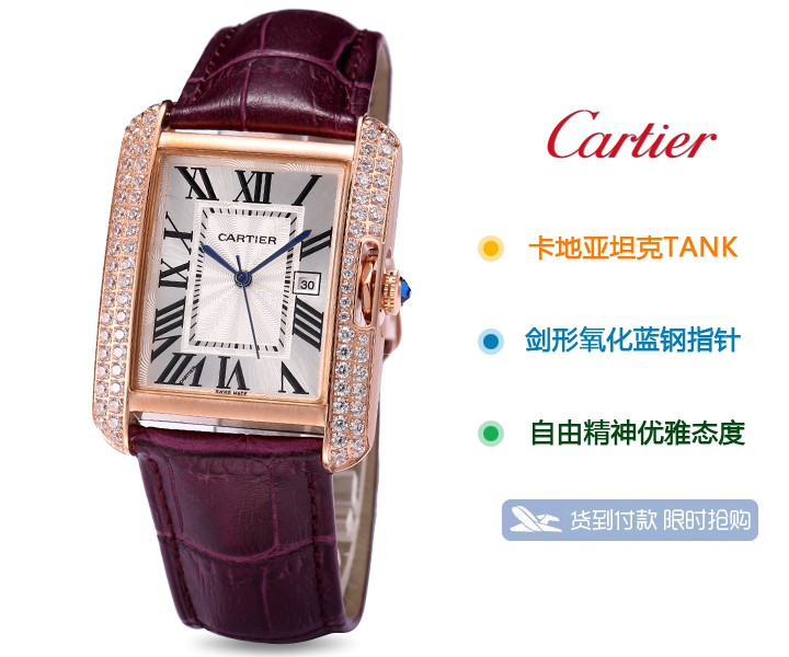 - 山东 高先生 185****8966 卡地亚坦克系列WT100013玫瑰金镶钻小盘大三针日期显示鳄鱼皮女士腕表卡地亚坦克系列WT100013玫瑰金镶钻小盘大三针日期显示鳄鱼皮女士腕表