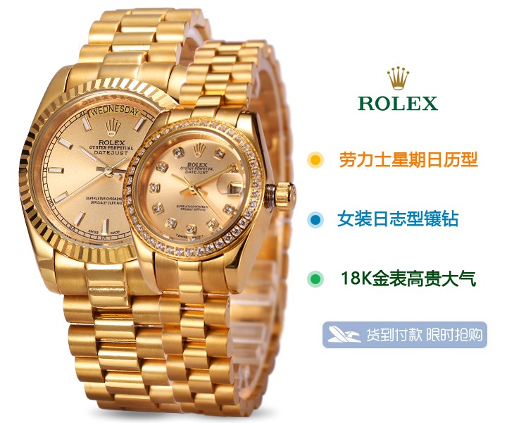 - 西藏 董女士 178****1502 劳力士星期日历型系列18K爆款土豪金情侣机械对表劳力士星期日历型系列18K爆款土豪金情侣机械对表